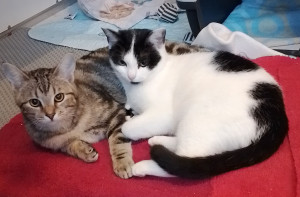 Kleine Kinder sollten möglichst nicht im neuen Zuhause sein. Kinder ab 10 Jahren mit Verständnis für die Bedürfnisse der Katzen und der Fähigkeit zu Rücksichtnahme sollten viel Freude daran haben, mitzuerleben, wie die Katzen langsam zutraulicher werden. Da die Kitten in Stall und Scheune aufgewachsen sind, wäre eine spätere Möglichkeit für Freigang für sie vielleicht ganz schön, aber erst, wenn sie ihr neues Zuhause zuverlässig als solches erkannt haben.