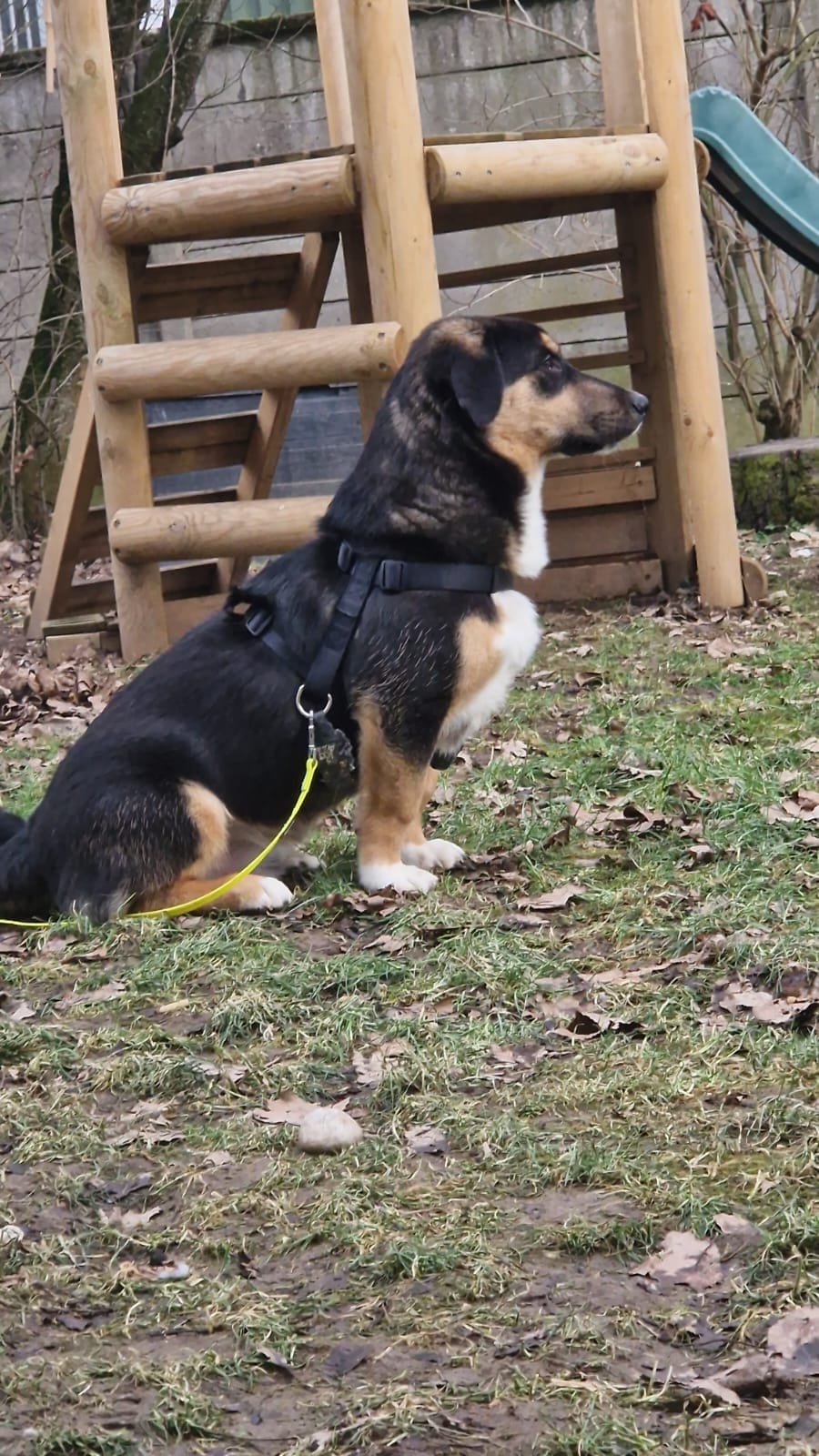 Das ist Nobbi, er ist 9 Monate alt, wiegt 20kg und nicht mehr wachsend. Er kennt Kinder und könnte problemlos in eine Familie mit größeren Kinder integriert werden. Auf seiner Pflegestelle wächst er mit anderen Hunden und Katzen auf, wobei er letzteren doch recht stürmisch gegenüber ist.