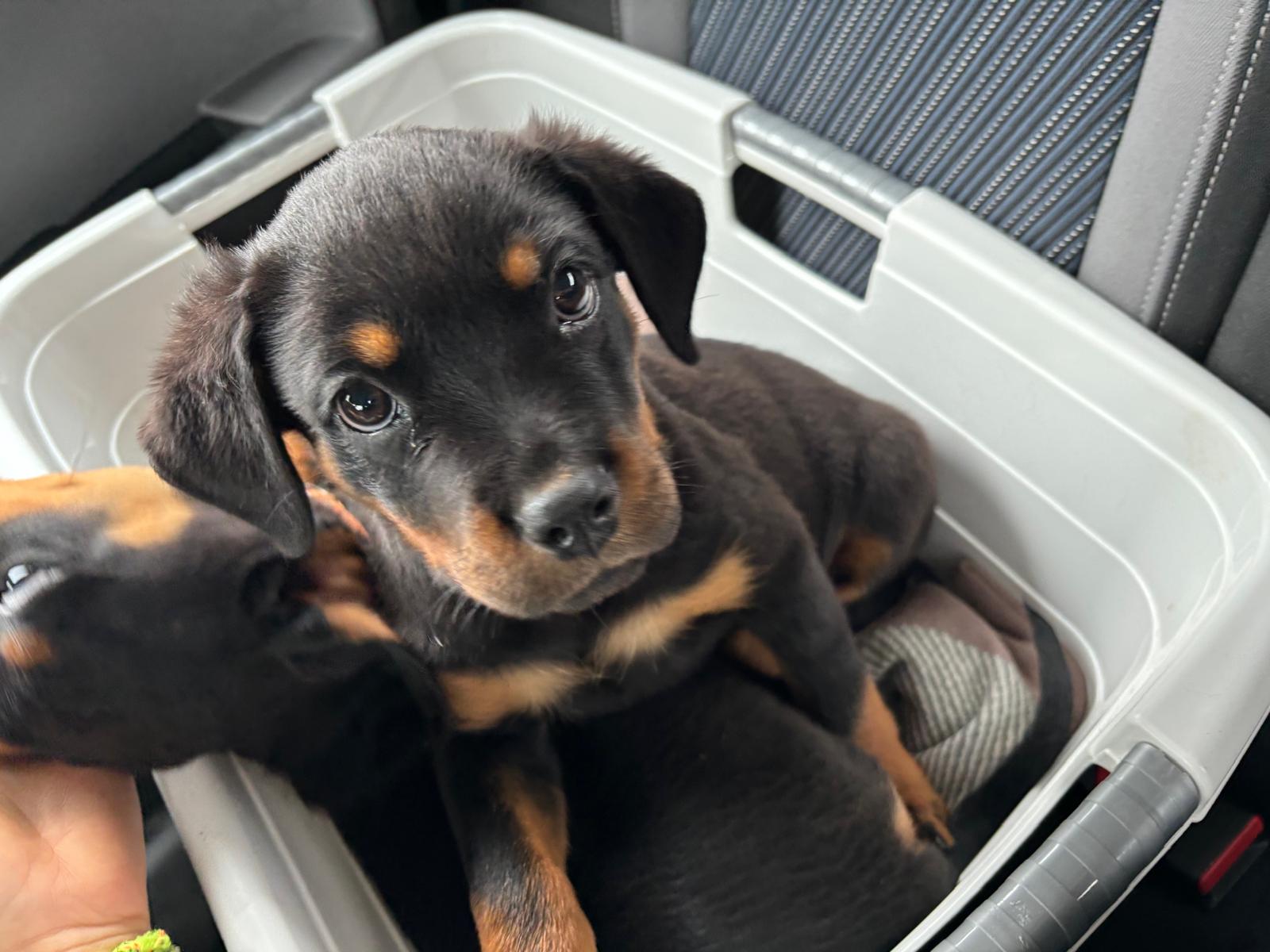 Dürfen wir uns vorstellen, wir heißen Oskar und Vito, sind zwei kleine Rottweiler Brüder und zur Zeit etwa 11 Wochen alt.