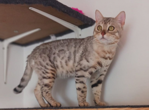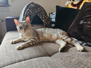 Puccini ein agiler Bengalmix, er ist noch keine 2 Jahre alt, da die Wachstumsfuge noch nicht geschlossen ist. Bengaltypisch gibt er zu allem und jedem seinen Senf dazu, generell ist er eine Plaudertasche par exzellence und quasselt gerne mit seinen Menschen. Er ist total verspielt und liebt Jagdspiele, bei denen er sich richtig auspowern kann! Hier sind Menschen mit Ausdauer gefragt, denn Puccini hat Kondition und Ausdauer 😅, er ist total menschenbezogen und verschmust, und wenn er genug hat, zeigt er es. Kinder sind kein Problem, sie sollten allerdings standfest sein aufgrund seiner Power. Puccini ist sich seiner Schönheit bewusst und will Einzelprinz sein ☝️andere Katzen findet er mega doof. Gesicherter Balkon oder Freigang in verkehrsberuhigter Zone ist ok, in einer Wohnung, die groß genug zum Toben und Jagen ist, fühlt er sich auch wohl, Hauptsache er hat seine Menschen um sich 🥰. Er ist negativ auf FIV, Leukose und Corona getestet, er bringt das rundum Sorglospaket mit, kastriert, geimpft und gechipt. Puccini ist ein absoluter Traumkater.