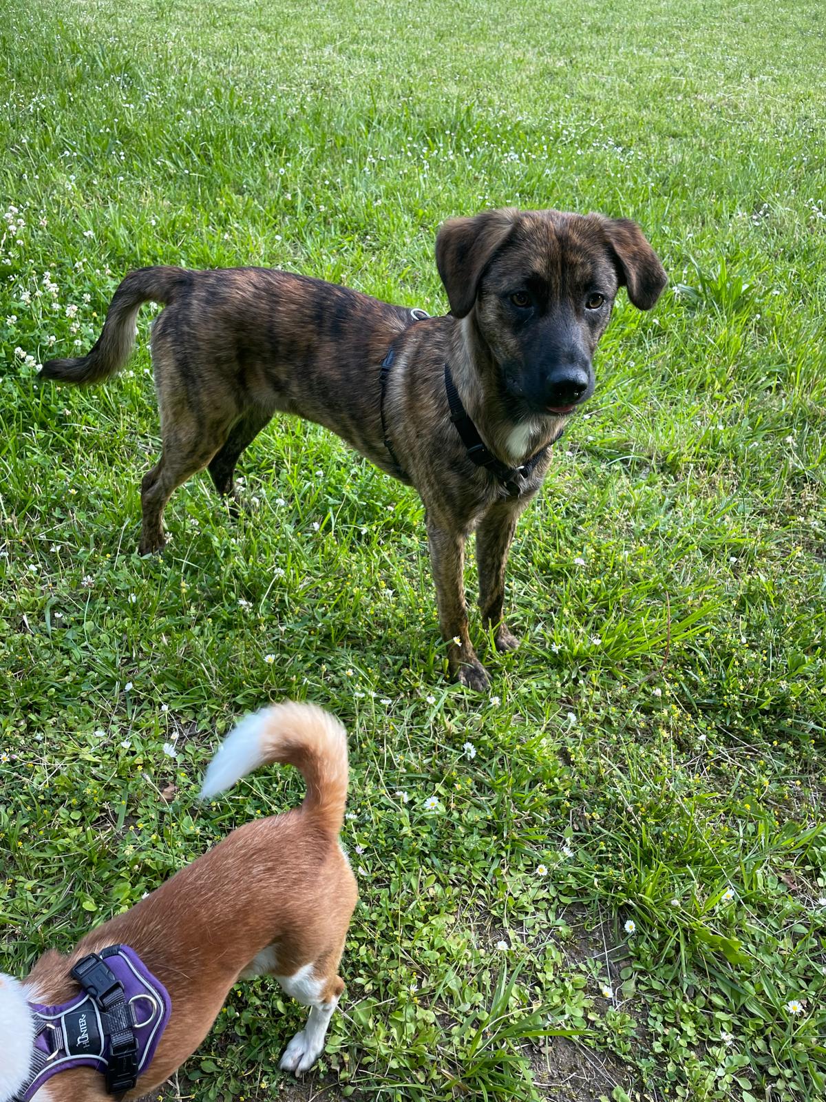 Theo ist gerade 9 Monate alt , besucht regelmäßig die Hundeschule und hatte bereits einiges gelernt. Grundkommandos beherrscht er schon.
