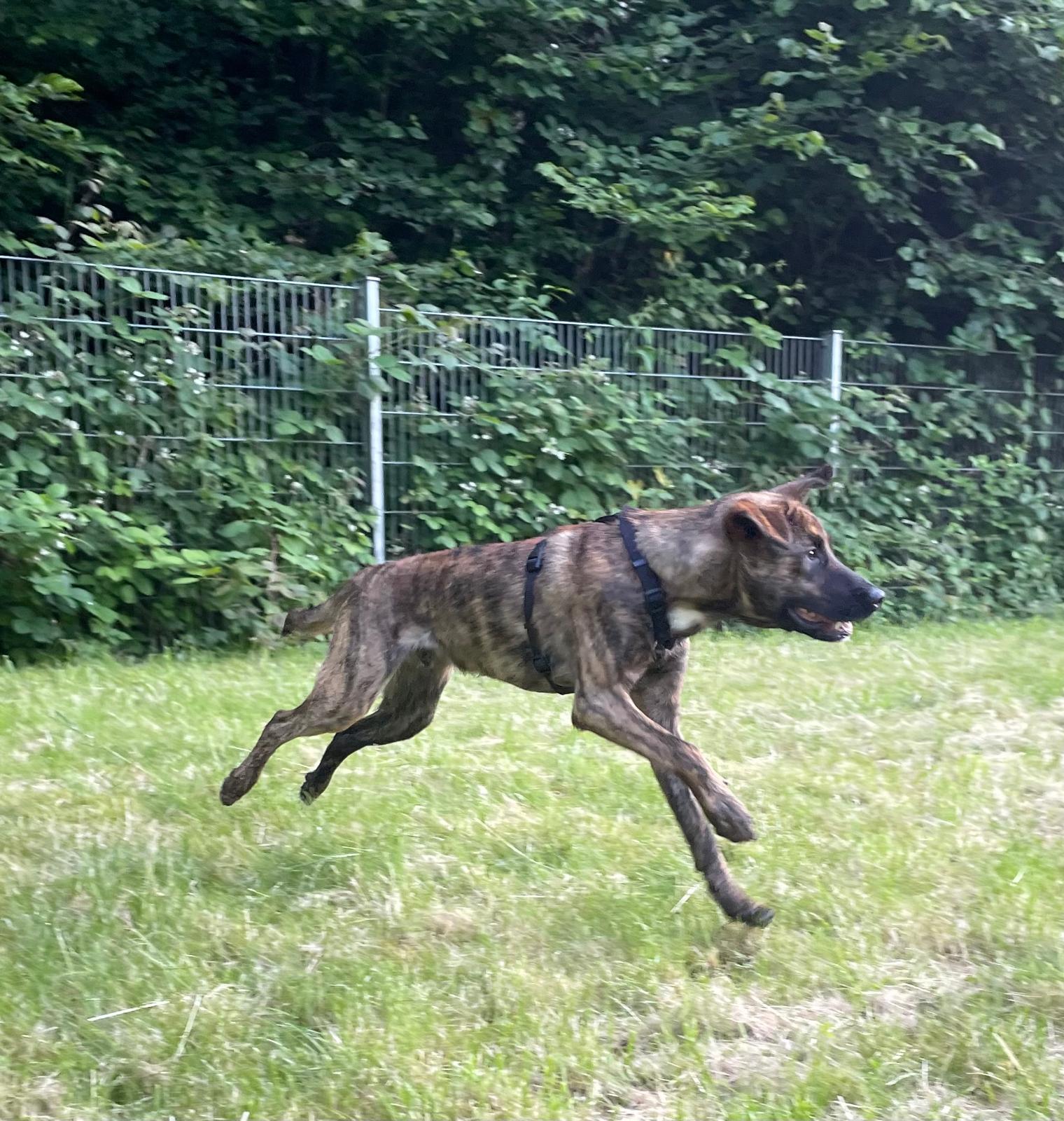 Als er nach Deutschland kam hatte er vor allem Angst, jetzt sind Autos, LKW, Motorräder, Gassi an der Bundesstraße, mittlerweile ist es kein Problem mehr. Er pöbelt jedoch Artgenossen an der Leine, daher braucht er jemanden der ihm die nötige Sicherheit mit liebevoller Konsequenz bietet. Leinenfrei ist er verträglich und zum spielen und Spaß haben bereit.